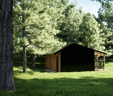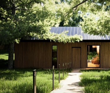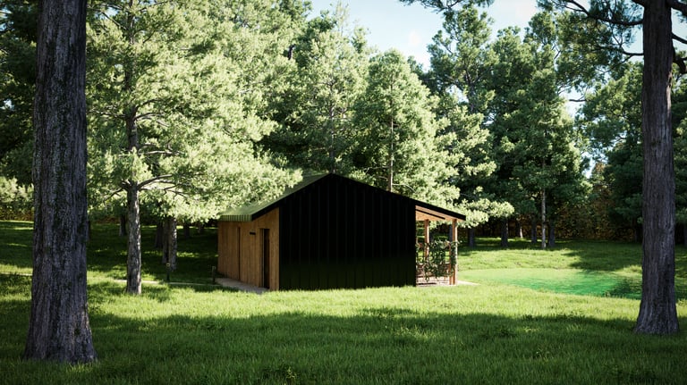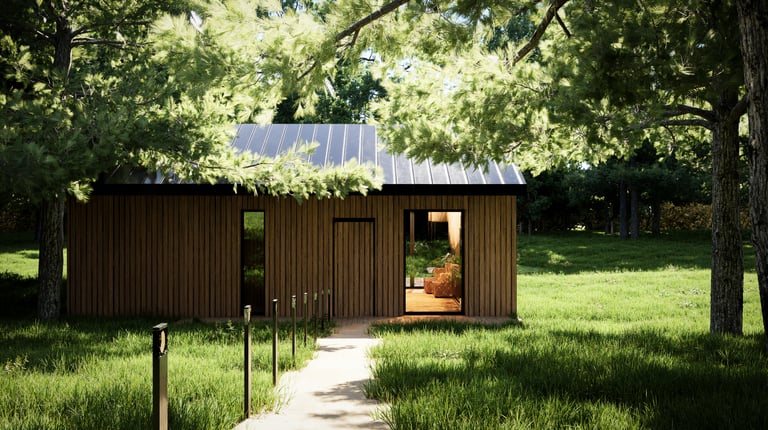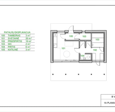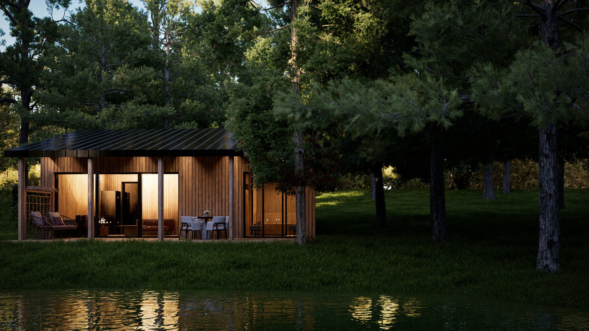 Šis dizainas parūpina 44 kvadratinių metrų garinės pirties pastatą pripildytą natūralia šviesa, porą dušų įkaitusio prakaito nuliejimui bei vietą susėsti 4-5 žmonių šeimai prie lango, kuris orientuotas į sklypo vandens telkinį. Einantiems pirtintis yra skirtas prieškambaris su pora suoliukų ir atskiru išėjimu į kiemą.